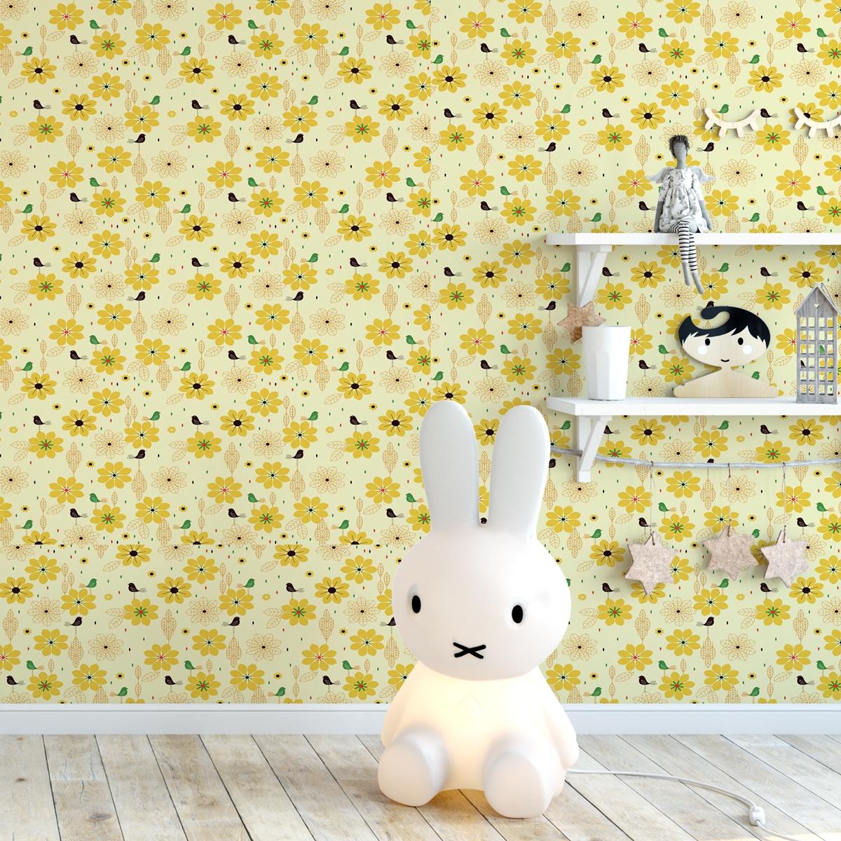 Adesivo Flores Papel De Parede Gg Fosco Amarelo Girassol 42 colorido | MadeiraMadeira